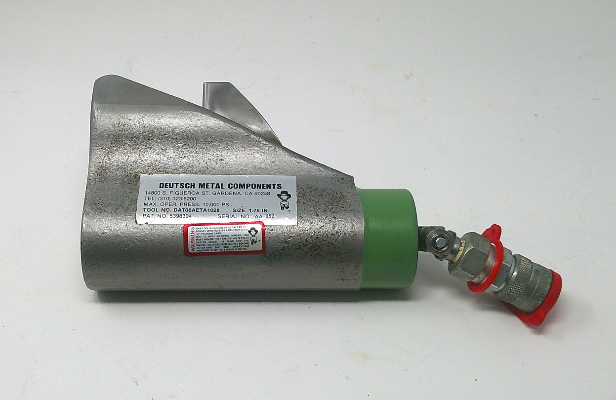 This Deutsch head assembly, DAT06AETA1028, size 1.75, is for swaging Aluminum hydraulic fittings.