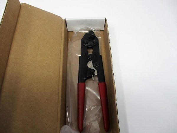 Controlled ratchet hand crimp tool for crimping D436-36, D436-37, D436-38, M81824/1-1, M81824/1-2, and M81824/1-3 environmental splices. Comparable to the popular Raychem AD-1377 and GMT232.